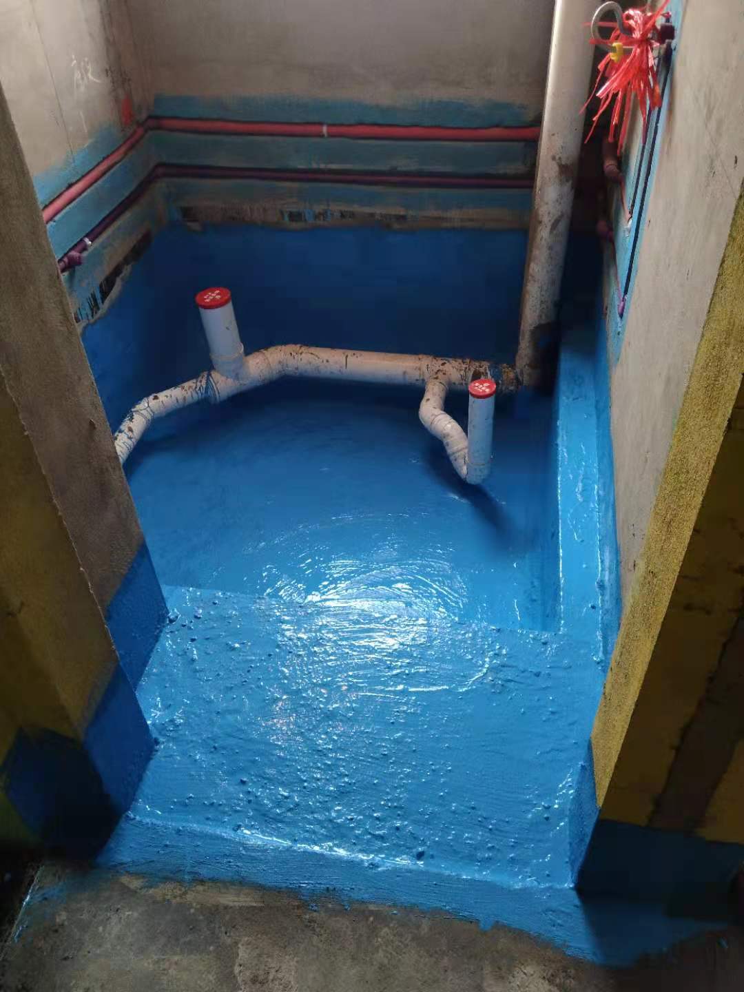 (3)涂膜防水层的基层应牢固,表面洁净、平整,阴阳角处呈圆弧形或钝角,聚氨脂底漆刷均匀、无漏涂。