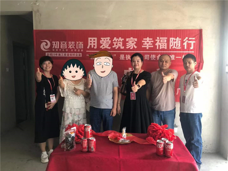 经过原屋俭收,电梯公共过道保护,铲除墙皮,黄墙绿地保护,全房放线定位,全房放样安全后知音装饰为每户业主举行隆重的开工仪式以表庆贺 前期施工#