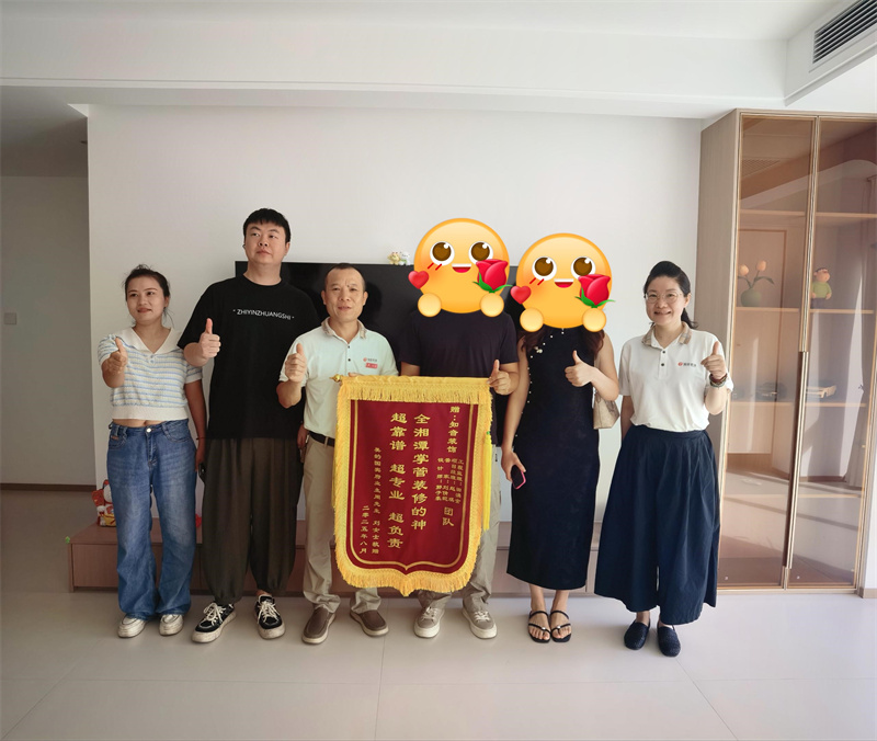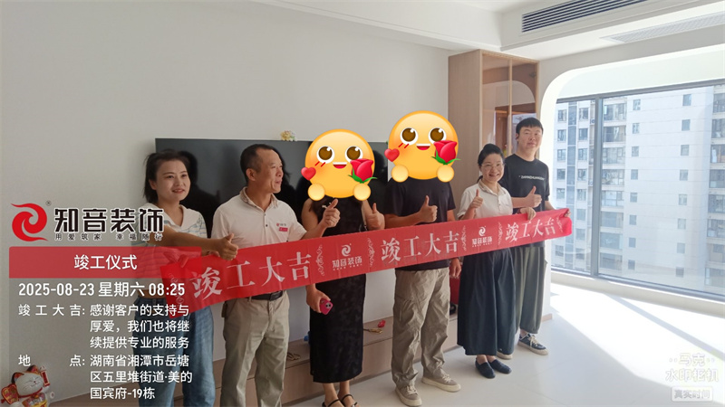 经过原屋俭收,电梯公共过道保护,铲除墙皮,全房放线定位后知音装饰为每户业主举行隆重的开工仪式以表庆贺