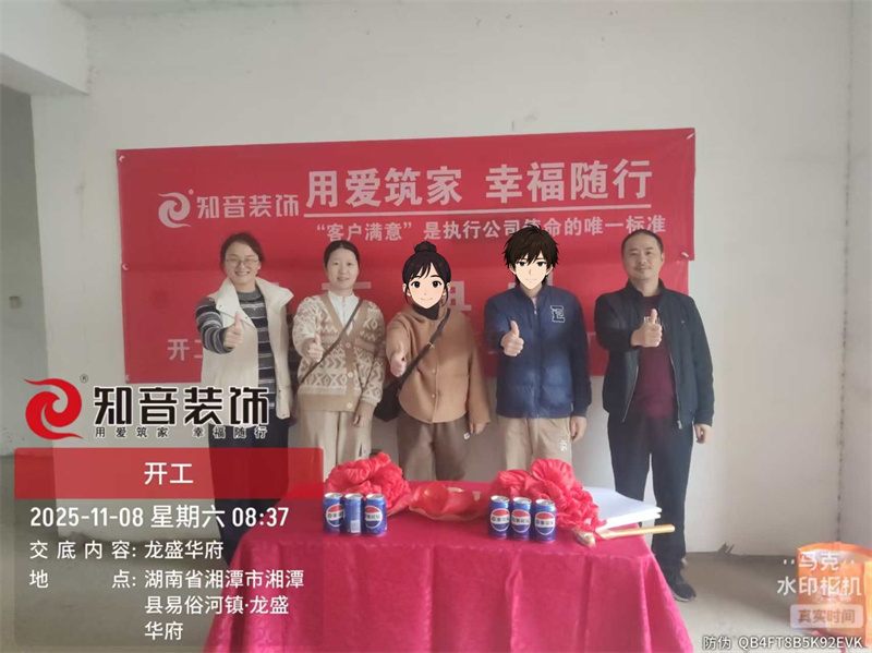 经过原屋俭收,电梯公共过道保护,铲除墙皮,全房放线定位后知音装饰为每户业主举行隆重的开工仪式以表庆贺