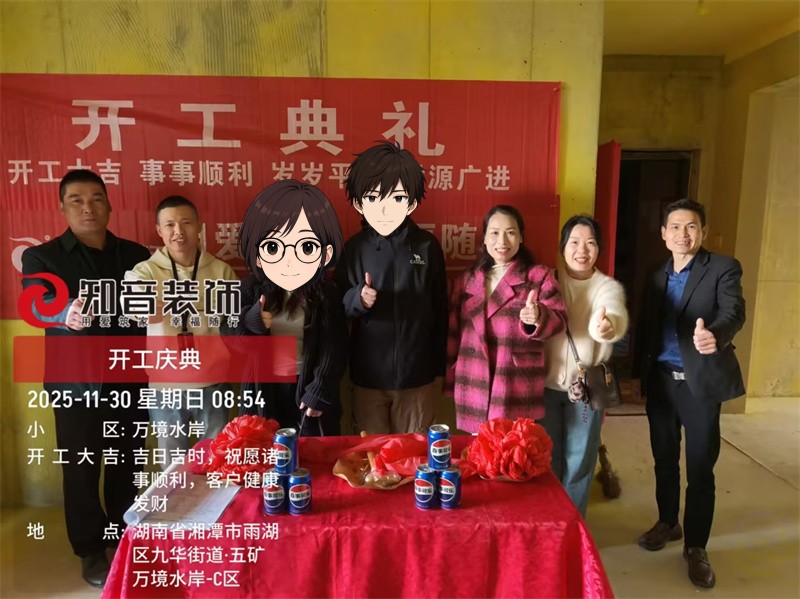 经过原屋俭收,电梯公共过道保护,铲除墙皮,全房放线定位后知音装饰为每户业主举行隆重的开工仪式以表庆贺