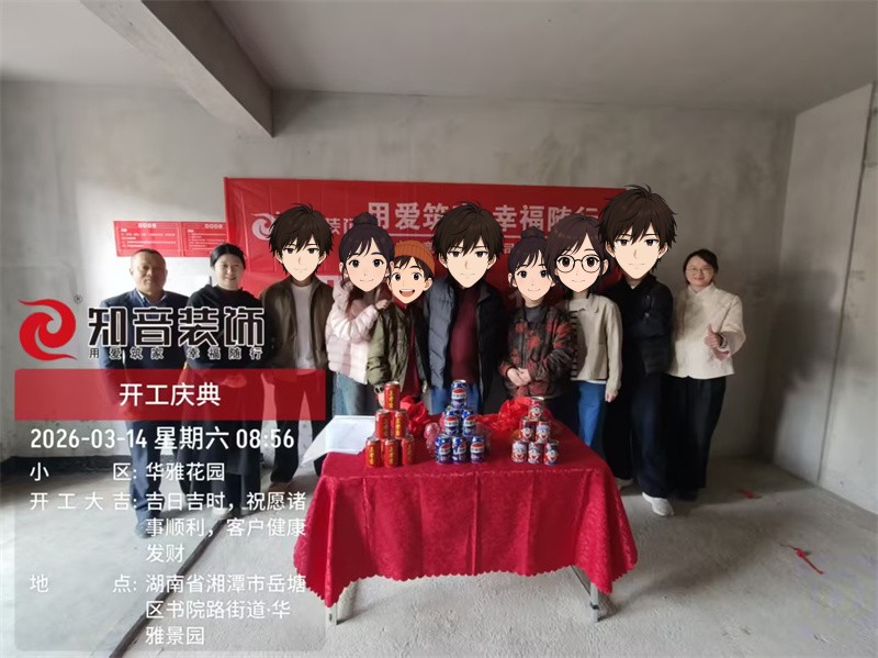 经过原屋俭收,电梯公共过道保护,铲除墙皮,全房放线定位后知音装饰为每户业主举行隆重的开工仪式以表庆贺