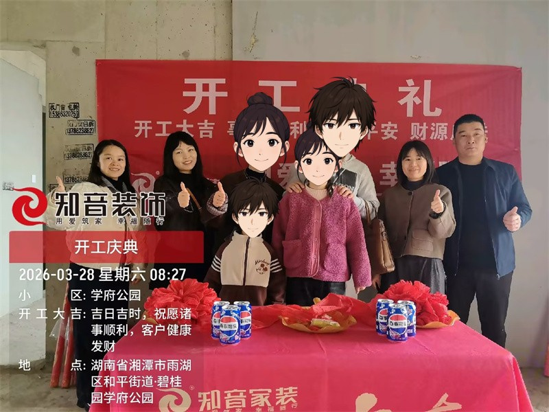 经过原屋俭收,电梯公共过道保护,铲除墙皮,全房放线定位后知音装饰为每户业主举行隆重的开工仪式以表庆贺