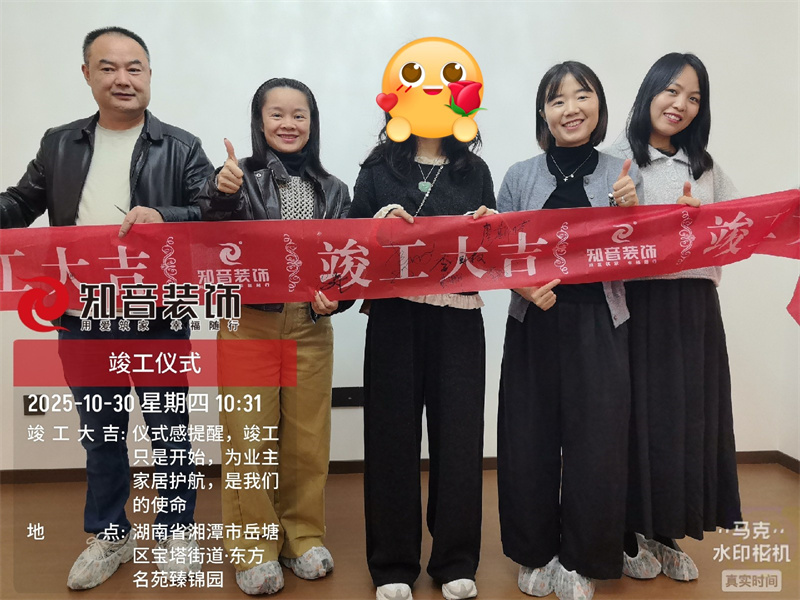 经过原屋俭收,电梯公共过道保护,铲除墙皮,全房放线定位后知音装饰为每户业主举行隆重的开工仪式以表庆贺