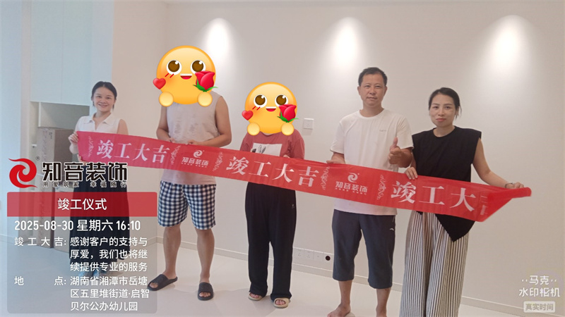经过原屋俭收,电梯公共过道保护,铲除墙皮,全房放线定位后知音装饰为每户业主举行隆重的开工仪式以表庆贺