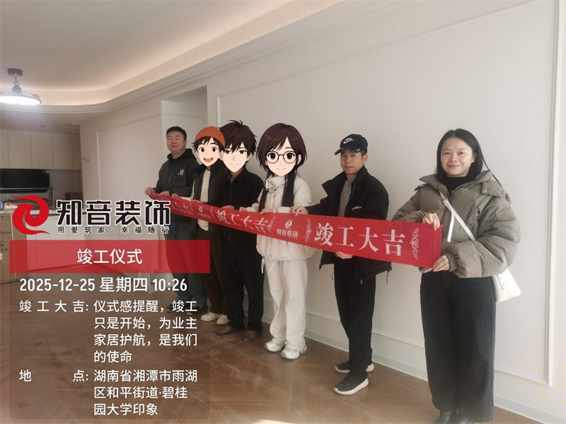经过原屋俭收,电梯公共过道保护,铲除墙皮,全房放线定位后知音装饰为每户业主举行隆重的开工仪式以表庆贺