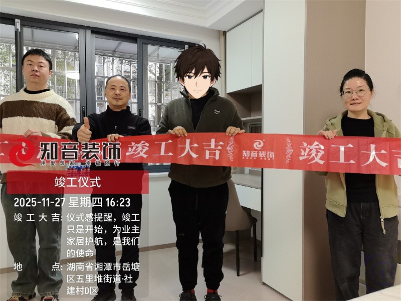 经过原屋俭收,电梯公共过道保护,铲除墙皮,全房放线定位后知音装饰为每户业主举行隆重的开工仪式以表庆贺