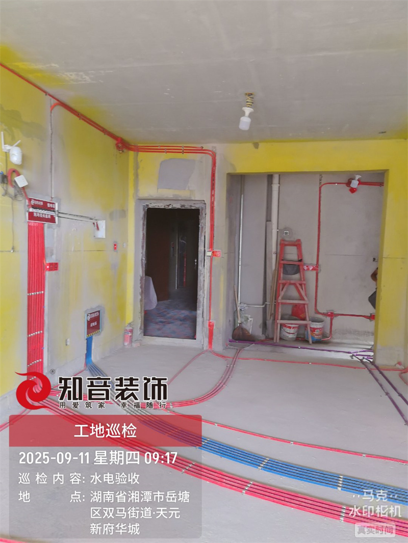 经过原屋俭收,电梯公共过道保护,铲除墙皮,全房放线定位后知音装饰为每户业主举行隆重的开工仪式以表庆贺