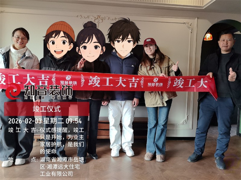 经过原屋俭收,电梯公共过道保护,铲除墙皮,全房放线定位后知音装饰为每户业主举行隆重的开工仪式以表庆贺