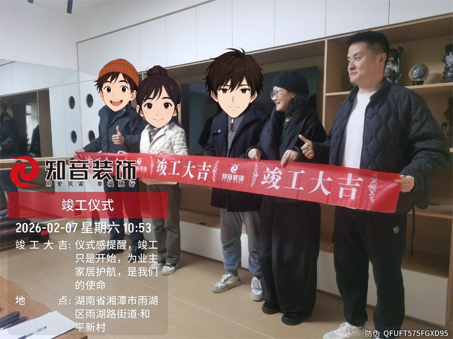 经过原屋俭收,电梯公共过道保护,铲除墙皮,全房放线定位后知音装饰为每户业主举行隆重的开工仪式以表庆贺