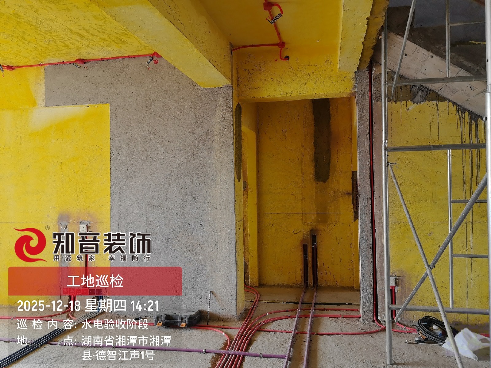 经过原屋俭收,电梯公共过道保护,铲除墙皮,全房放线定位后知音装饰为每户业主举行隆重的开工仪式以表庆贺
