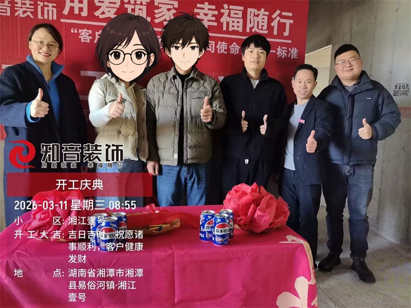 经过原屋俭收,电梯公共过道保护,铲除墙皮,全房放线定位后知音装饰为每户业主举行隆重的开工仪式以表庆贺