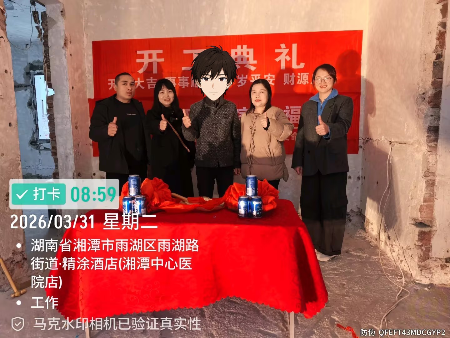 经过原屋俭收,电梯公共过道保护,铲除墙皮,全房放线定位后知音装饰为每户业主举行隆重的开工仪式以表庆贺